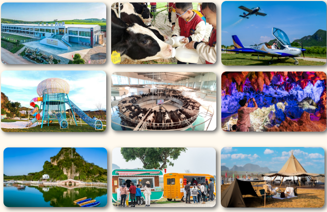 牧场由广西石埠乳业集团全资投资建设,占地3300余亩,是长江以南最大、也是国家5A级生态观光牧场、全国现代农业产业技术示范基地、全国奶牛养殖标准化示范牧场。坐拥崇左地区独特的喀斯特地貌,群山环抱,由奶牛科普馆、瀑布山、溶洞、七彩湖、无动力乐园、萌牛乐园、精致露营地、航空飞行科普区等组成,在此,您能尽享现代农业技术、科学养牛与自然生态融合的奇妙乐趣。